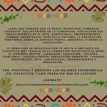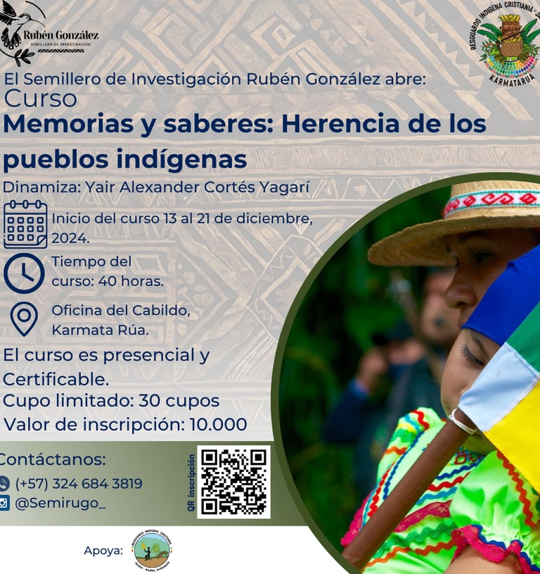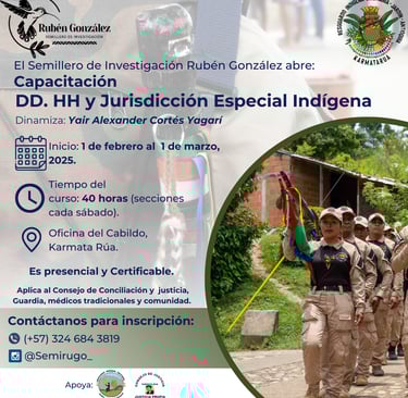 El Semillero Rubén González es nuestro programa central de formación política, cultural, científica y comunitaria, que nace como homenaje a un sabedor y guía del territorio. A través de este espacio, promovemos procesos de investigación con identidad, formación crítica y acción transformadora desde las juventudes indígenas.